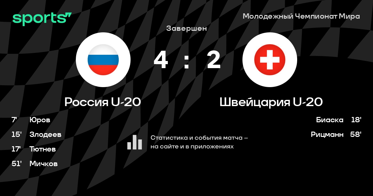 Как прошел матч, смотрите в текстовой трансляции Россия U-20 - Швейцария U-20 на Sports.ru