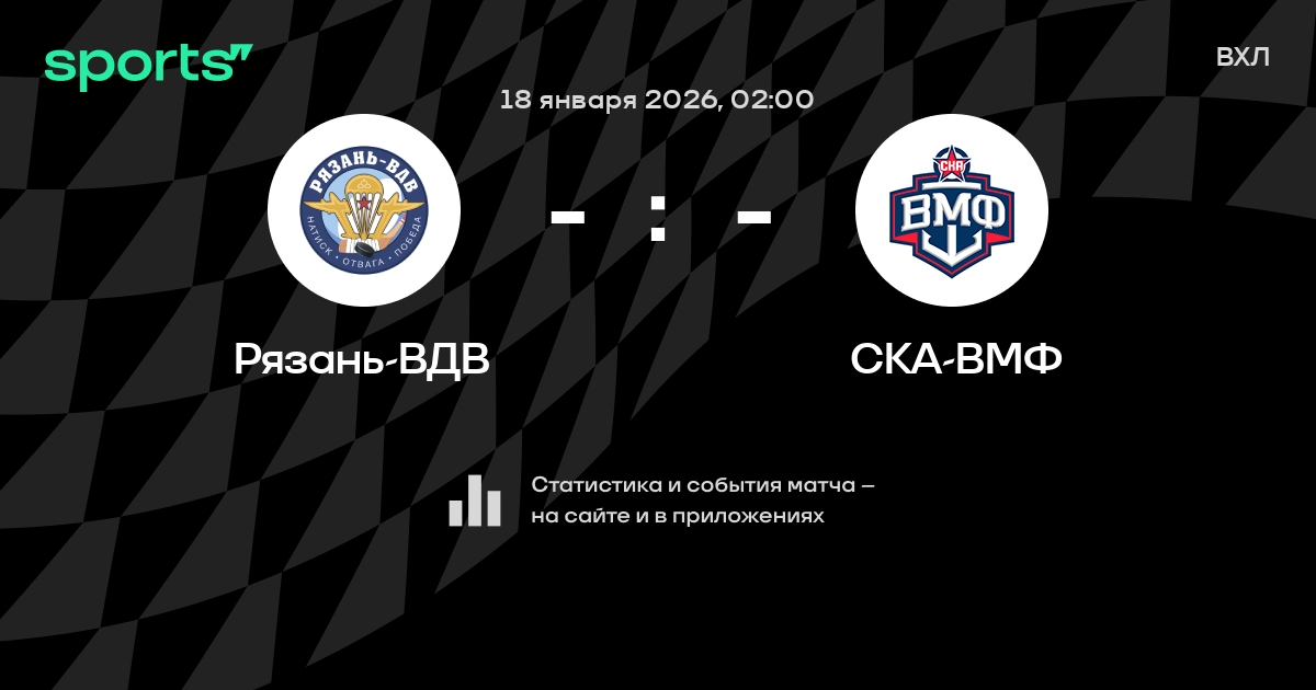 В предстоящем матче в рамках турнира ВХЛ пройдет встреча команд Рязань-ВДВ - СКА-ВМФ в городе на стадионе The Palace of sports Olimpiyskiy.