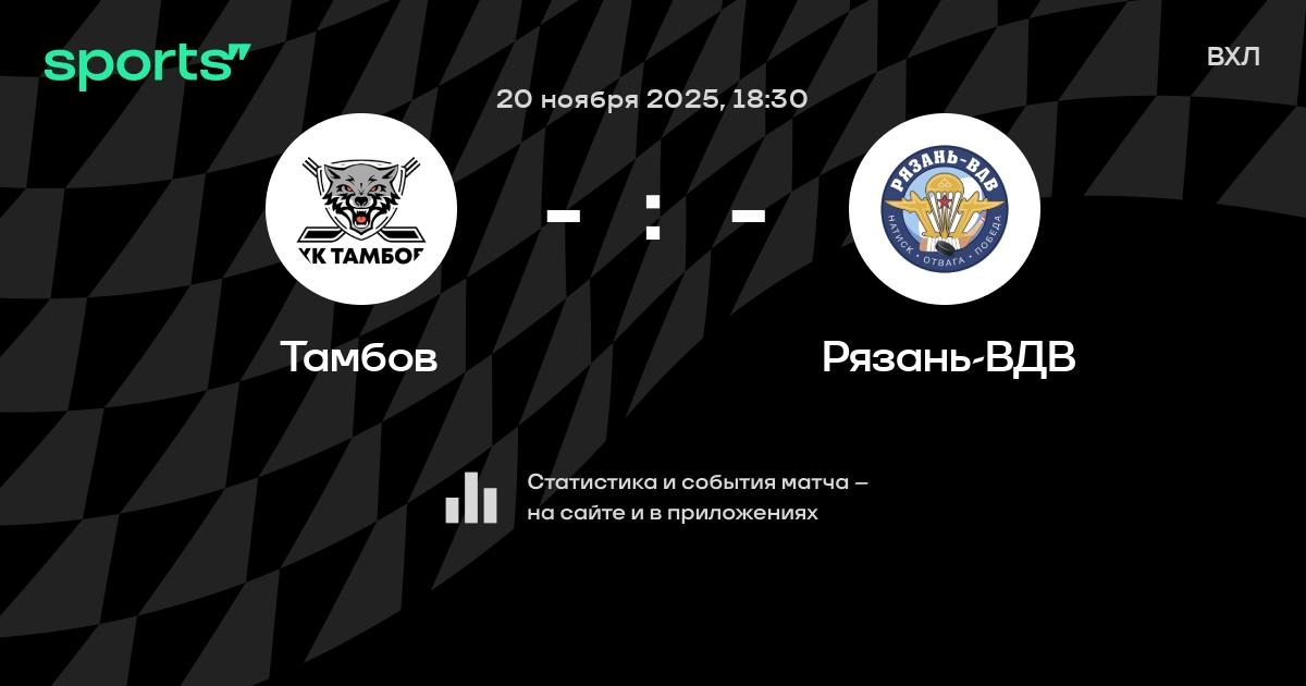 В предстоящем матче в рамках турнира ВХЛ пройдет встреча команд Тамбов - Рязань-ВДВ в городе на стадионе Sports Palace Crystal.
