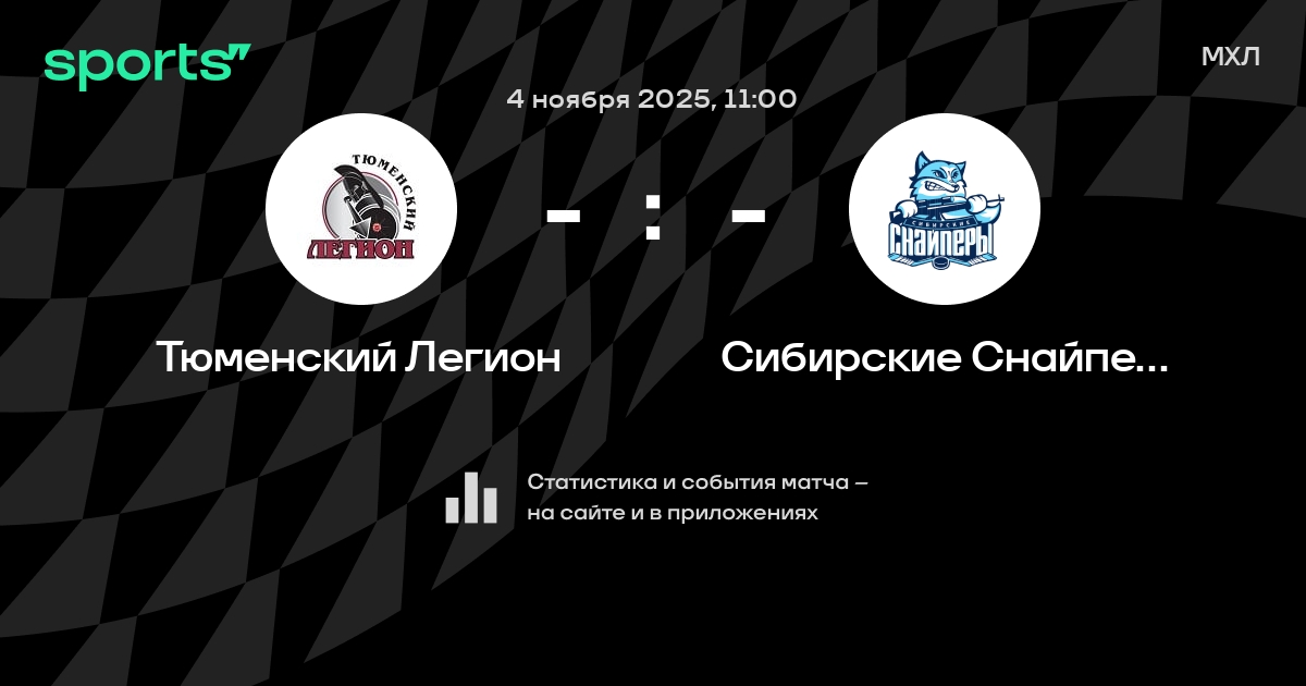 В предстоящем матче в рамках турнира МХЛ пройдет встреча команд Тюменский Легион - Сибирские Снайперы в городе на стадионе Ledovyy Dvorets Sporta Im. N.v. Parysheva.