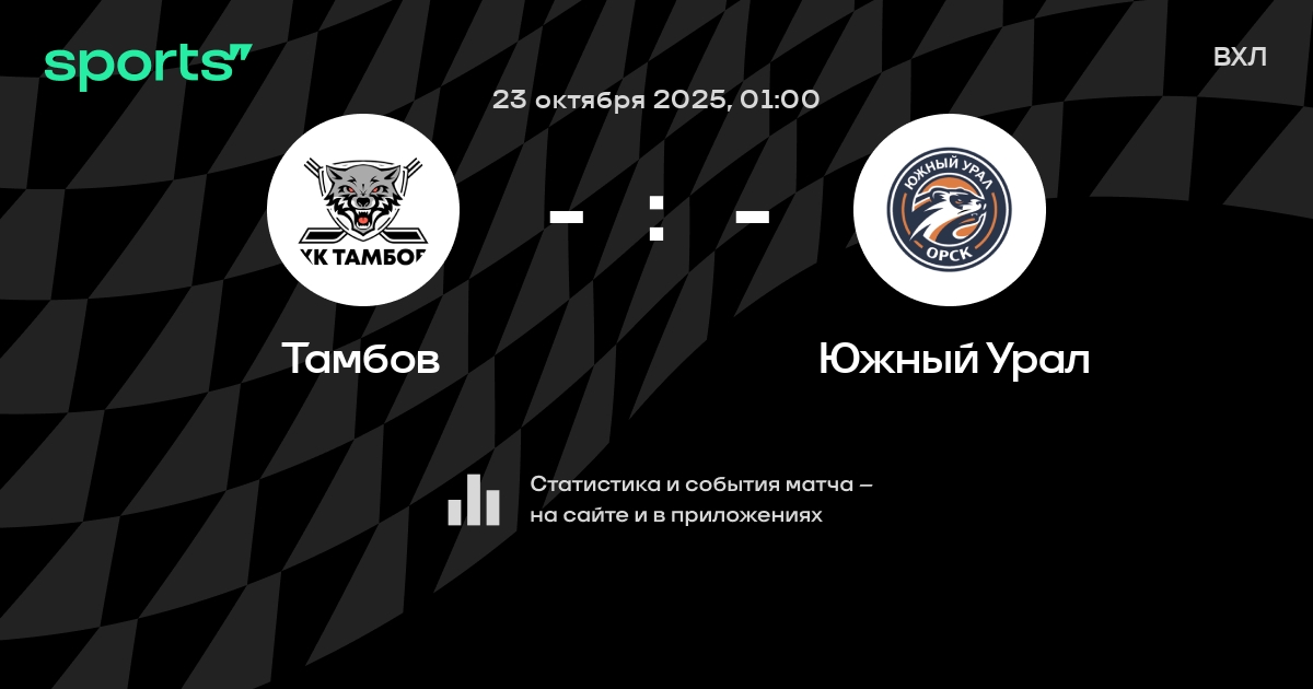 В предстоящем матче в рамках турнира ВХЛ пройдет встреча команд Тамбов - Южный Урал в городе на стадионе Sports Palace Crystal.