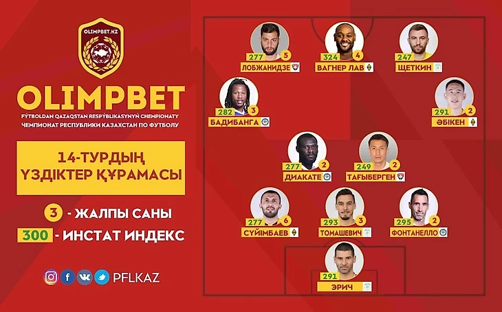ПФЛК опубликовала символическую сборную 14-го тура КПЛ.