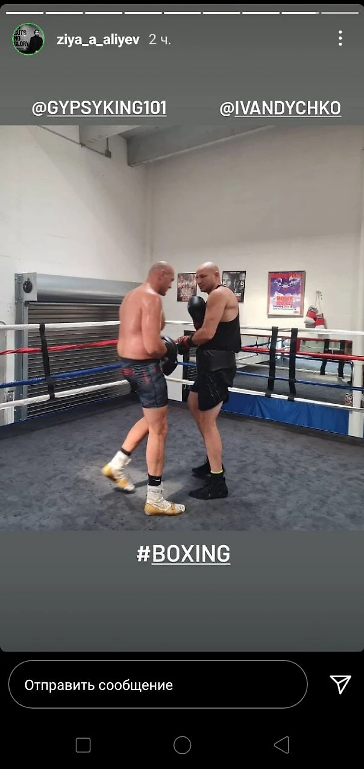 Менеджер Зия Алиев опубликовал пост в своем instagram-аккаунте, на котором казахстанский боксер Иван Дычко (9-0) вместе с британским чемпионом Тайсоном Фьюри отрабатывают удары на одном ринге.