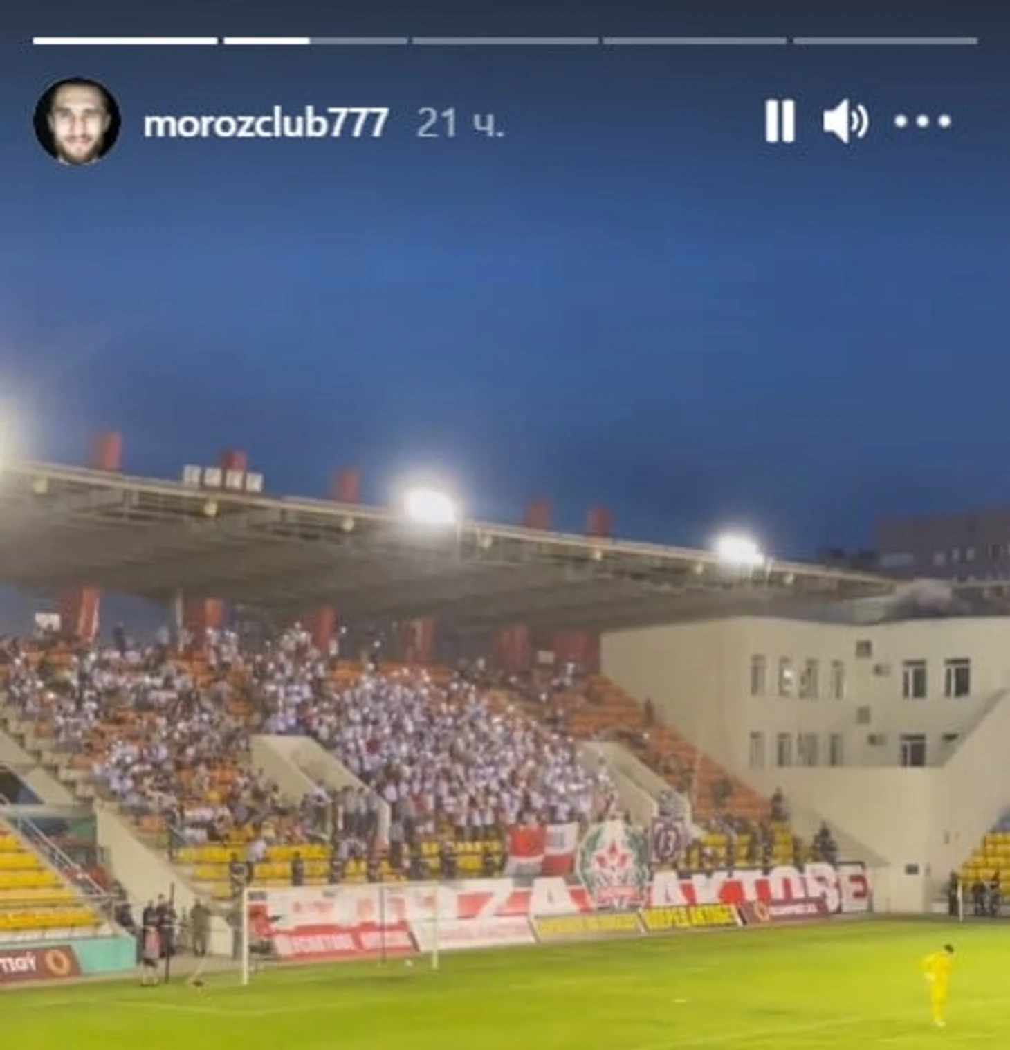 Находясь на трибунах, Морозов выложил на свою страницу в Instagram видео со словами: «Наши проигрывают 2:0, но 13 сектор – красавчики, топят за команду!».