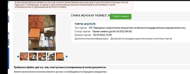 Женскую сумку Hermes экс-вице-министра культуры и спорта РК Сакена Мусайбекова, купленную за 4 млн тенге, выставили на аукцион по оценочной стоимости 8,5 млн тенге.