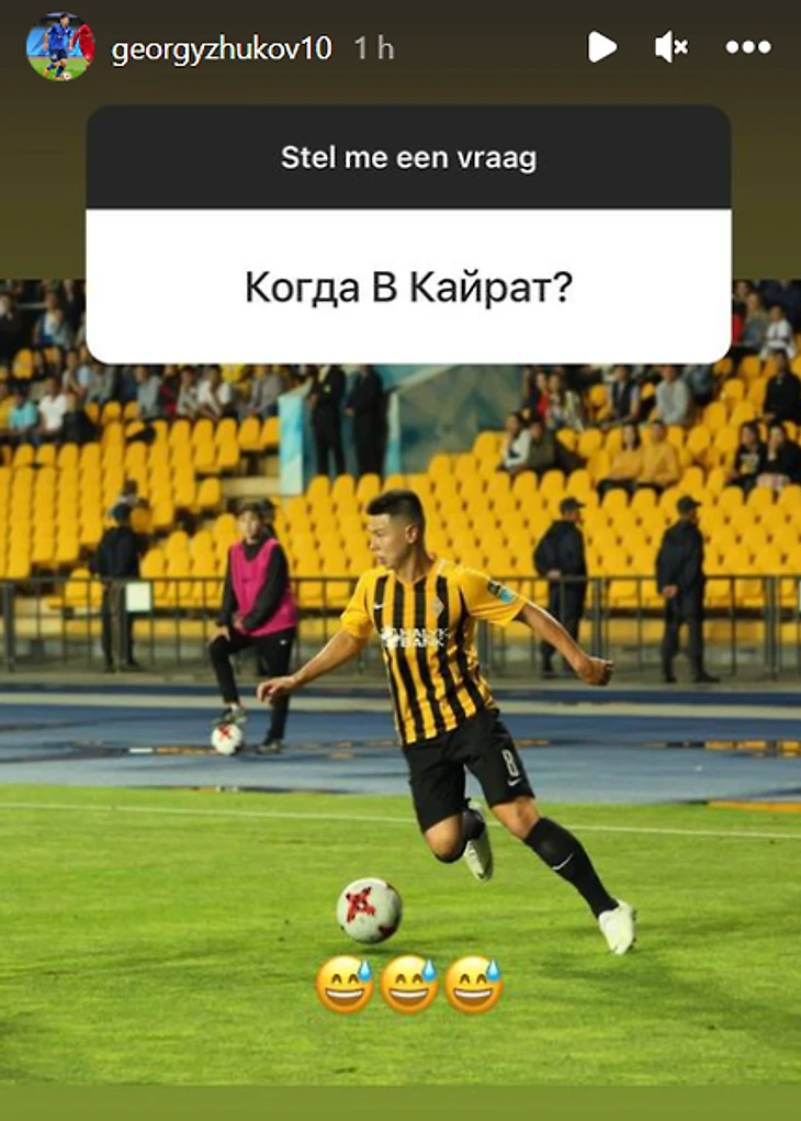 В разделе сторис на своей странице в социальной сети один из подписчиков Жукова спросил его «Когда в «Кайрат»?», на что Георгий ответил тремя нервно смеющимися эмодзи.