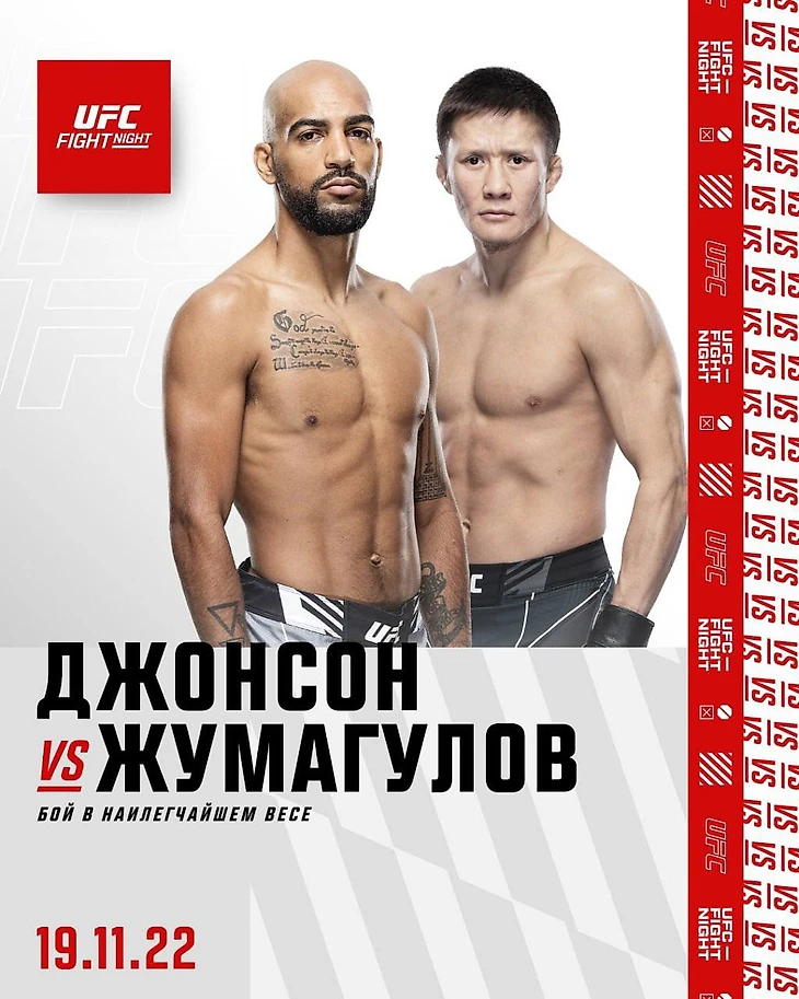 Казахстанский боец UFC Жалгас Жумагулов(14-7) встретится с Чарльзом Джонсоном (11-4) на турнире UFC Fight Night 19 ноября. Оба бойца проиграли свои последние поединки. Жалгас уступил очень спорным решением Джеффу Молине, а Чарльз – Мухаммеду Мокаеву.