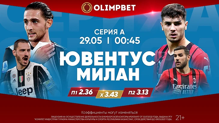 Серия А. 37-й тур. «Ювентус» – «Милан». 29 мая, 00:45 (время Астаны)