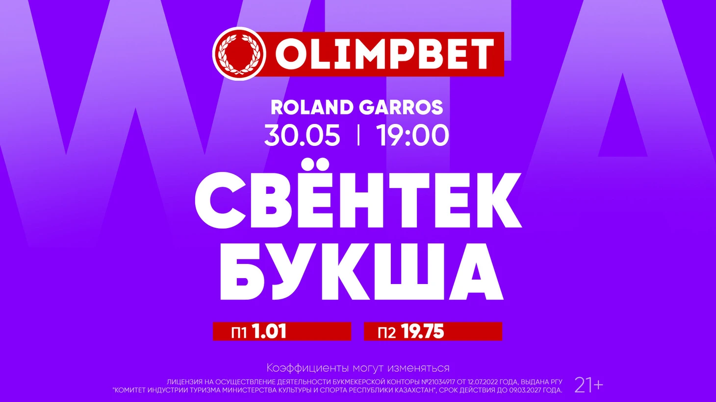 Самый популярный букмекер Казахстана уверен, что Свентек, главная фаворитка «Ролан Гаррос», уверенно выйдет во второй круг – П1 – 1.01, П2 – 19.75. Вероятно, что Букша возьмет в этом матче наименьшее количество геймов – Тот (15.5) М – 2.16.