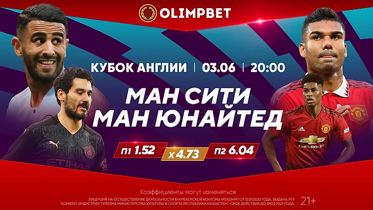 Однако самый щедрый букмекер Казахстана практически не сомневается в успехе «Манчестер Сити»: П1 – 1.52, Х – 4.73, П2 – 6.04. Не менее солидный перевес «горожан» прогнозируется экспертами Olimpbet и по угловым: П1 – 1.19, Х – 9, П2 – 6.