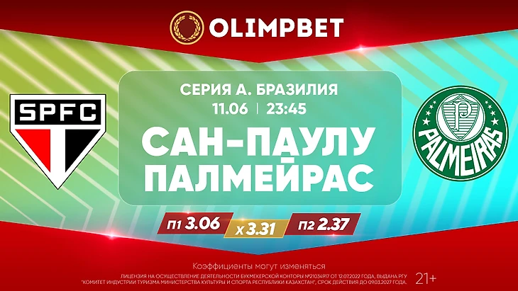 Бразилия. Серия А. 10-й тур. «Сан-Паулу» – «Палмейрас». 12 июня, 01:00 «Палмейрас», судя по всему, серьезно намерен побороться в стартовавшем сезоне за звание чемпиона Серии А. В девяти турах Бразилейро подопечные португальского тренера Абеля Феррейры не проиграли еще ни разу (пять побед), забив 20 мячей.