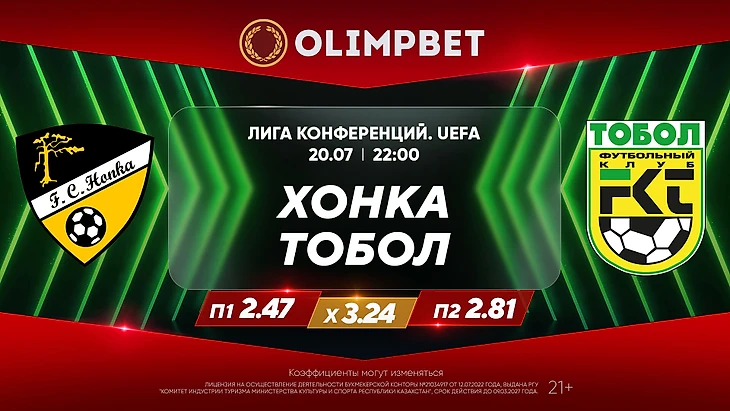 Самый популярный букмекер Казахстана также полагает, что у клуба из Эспоо больше шансов на победу в ответном матче: П1 – 2.47, Х – 3.24, П2 – 2.81. Однако фаворитом по сумме двух встреч, причем явным, аналитики считают костанайцев: проход «Хонки» – 2.92, проход «Тобола» – 1.38.