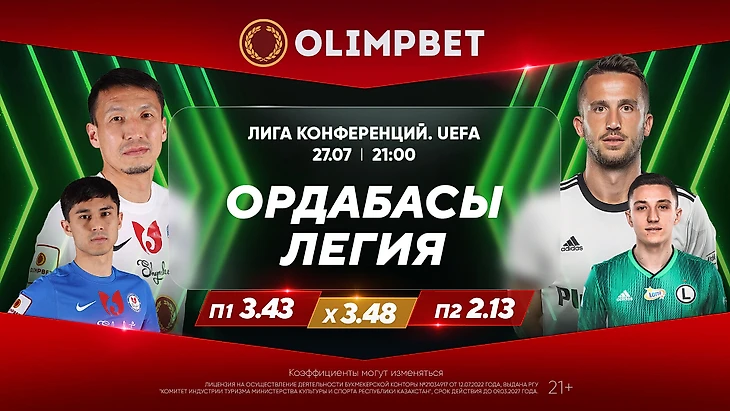 Конечно, «Ордабасы» ни в коем случае нельзя сдаваться заранее, хотя эксперты Olimpbet и считают варшавян безоговорочными фаворитами предстоящего противостояния. Причем это относится как к шымкентскому матчу (П1 – 3.43, Х – 3.48, П2 – 2.13), так и к сумме двух встреч (проход «Ордабасы» – 4.25, проход «Легии» – 1.22).