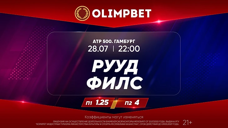 На грунтовом турнире АТР 500 Hamburg European Open топовые теннисисты сегодня сыграют за выход в полуфинал. И вот какие коэффициенты у самого популярного букмекера Казахстана.