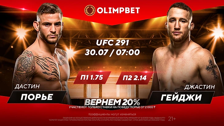 30 июля ориентировочно около 7 утра по времени Астаны начнется главный поединок турнира UFC 291. Дастин «Бриллиант» Порье (29-7) и Джастин «Хайлайт» Гейджи (24-4) сразятся за вакантный титул BMF.