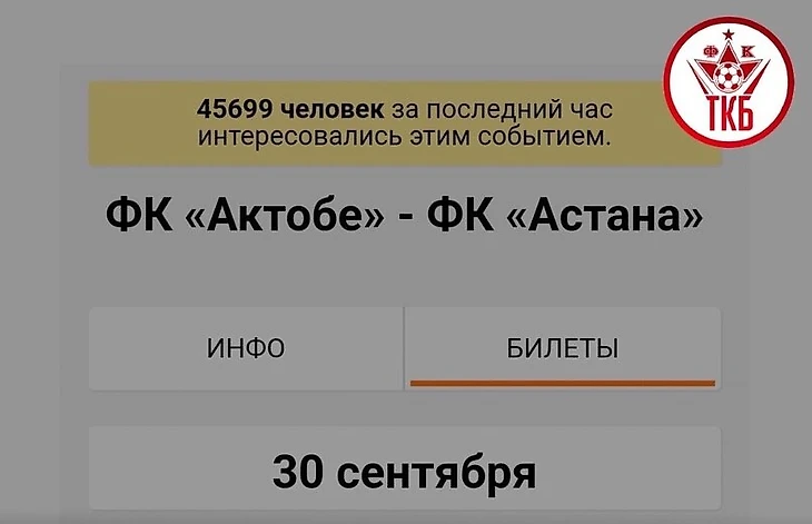 Поклонников казахстанского футбола ждет одно из решающих противостояний за распределение медалей Olimpbet-Чемпионата Казахстана. Ажиотаж вокруг встречи «Актобе» – «Астана» нешуточный. Согласно статистике билетного оператора, попасть на эту игру одномоментно пыталось более 45 тысяч человек. Паблик «Территория Красно-Белых» зафиксировал такую цифру.