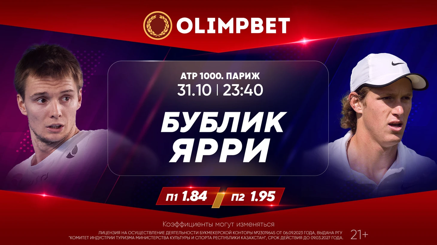 Эксперты Olimpbet не видят в этом матче явного фаворита – П1 – 1.84, П2 – 1.95. Коэффициент на то, что Бублик выйдет победителем в упорной трехсетовой борьбе, равен 4.
