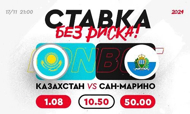 FONBET – букмекер с самыми быстрыми выплатами в Казахстане – предлагает всем болельщикам поддержать сборную Казахстана и сделать СТАВКУ БЕЗ РИСКА на игру против Сан-Марино: соберите экспресс с коэффициентом от 2.50 и включите в него хотя бы одно событие из матча Казахстан – Сан-Марино. В случае проигрыша вам вернется 100% от суммы ставки в виде бонуса на бонусный счет.