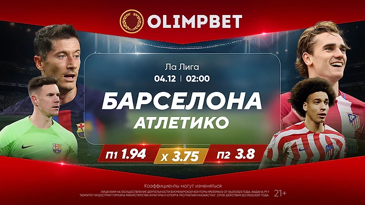 Нынешний «Атлетико» – команда сверхатакующая. За 13 сыгранных туров сезона Ла Лиги мадридцы забили 30 мячей. В линии казахстанского букмекера №1 Olimpbet присутствует вариант ставки на индивидуальный тотал гостей в матчей (1) бол за коэффициент 1.83.