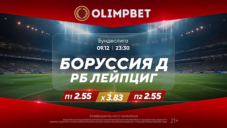 В линии самого щедрого букмекера Казахстана Olimpbet можно найти следующие коэффициенты на исходы: П1 – 2.55, Х – 3.83, П2 – 2.55.