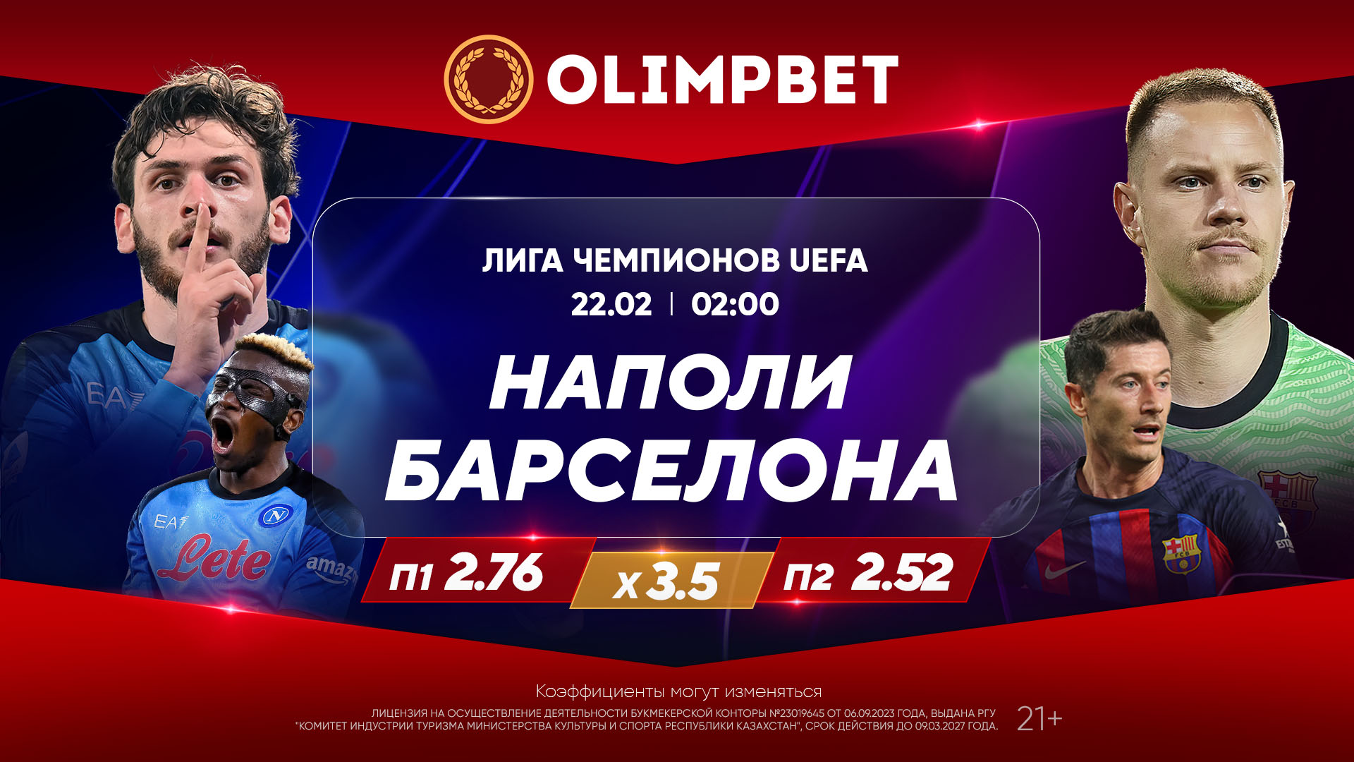 Эксперты Olimpbet сходятся во мнении, что в первом матче шансы команды примерно равны: П1 – 2.76, Х – 3.5, П2 – 2.52. А вот по итогам двухраундового спора букмекер № 1 в Казахстане считает «Барсу» явным фаворитом: проход «Наполи» – 2.56, проход «Барселона» – 1.51.