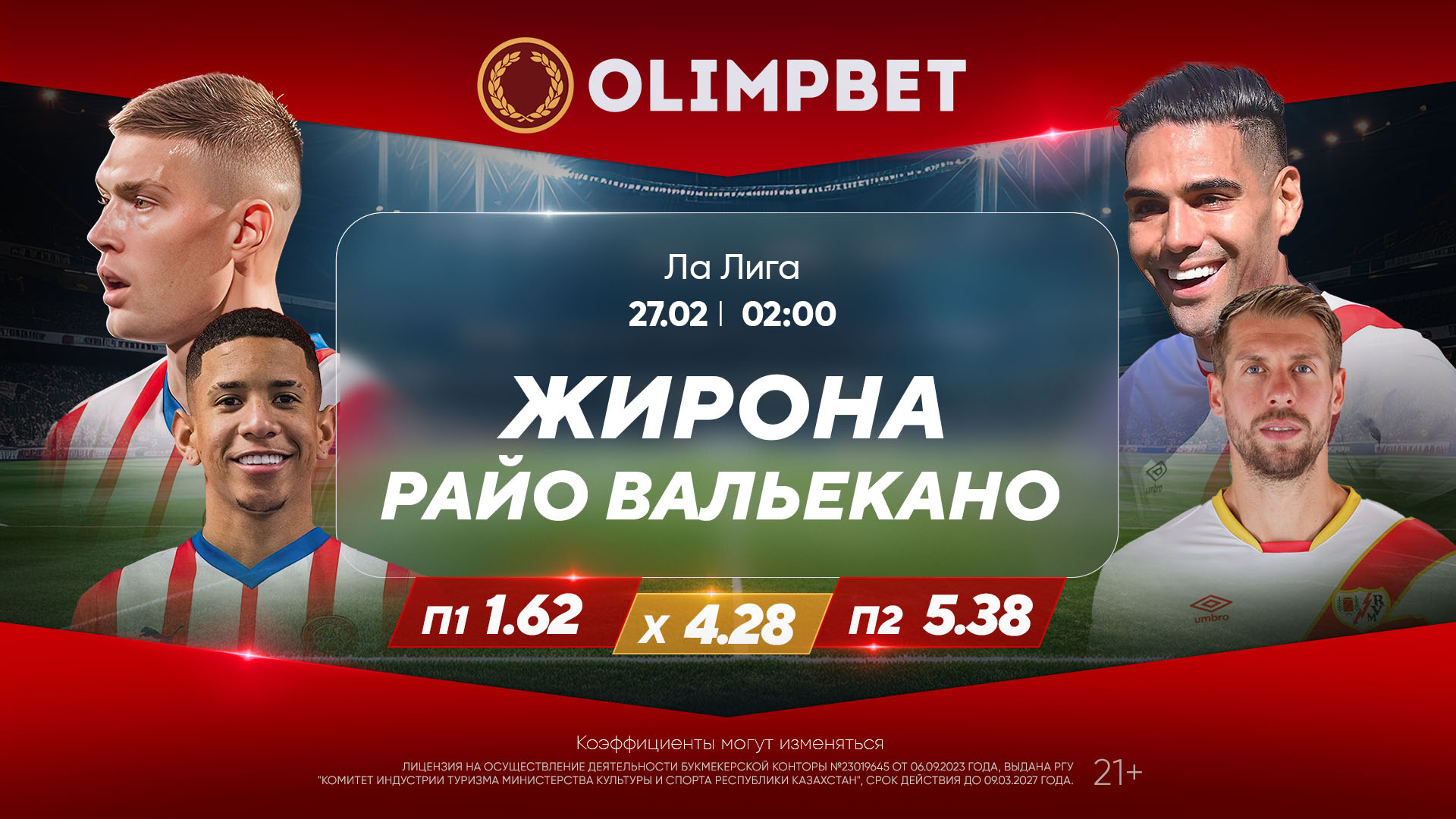 Ла Лига. 26-й тур. «Жирона» – «Райо Вальекано». 27 февраля, 02:00 (время Астаны)