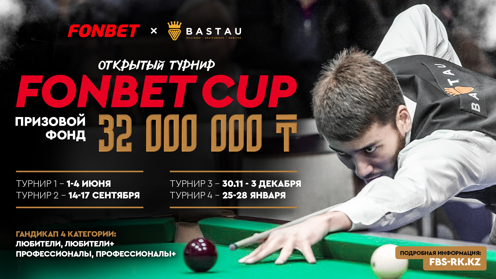 Букмекерская компания FONBET и спортивно-развлекательный клуб BASTAU объявляют о запуске открытой серии турниров FONBET CUP c призовым фондом 32 миллиона тенге – рекордным для коммерческих турниров по бильярду в Казахстане.