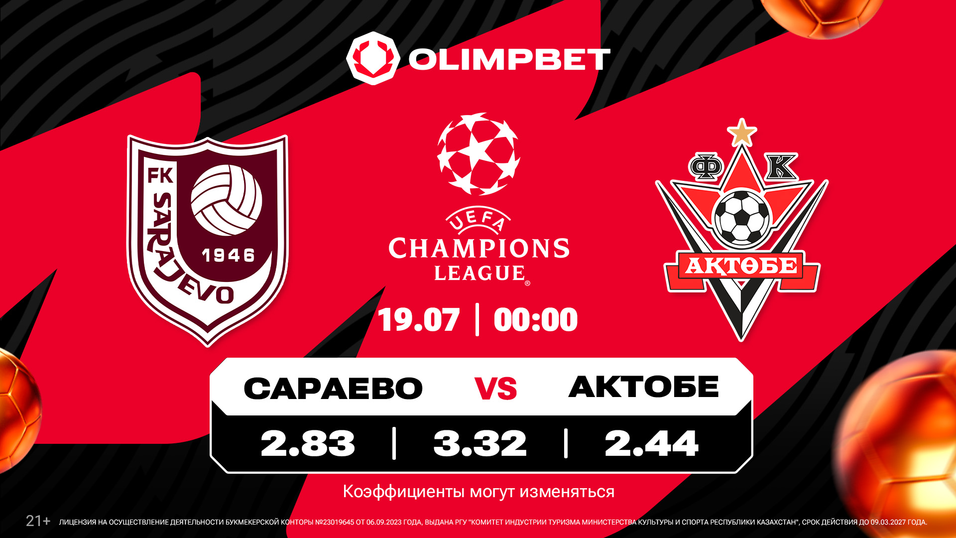 Аналитики Olimpbet полагают, что теперь шансы одного из лидеров Olimpbet-Чемпионата Казахстана на преодоление стартового барьера квалификации Лиги конференции близки к призрачным: проход «Сараево» – 1.27, проход «Актобе» – 3.54.