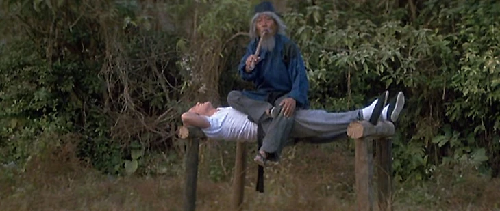 В роли наставника Джеки - тот же самый колоритный старичок Юань Сяотянь, который изводил его в Пьяном мастере.