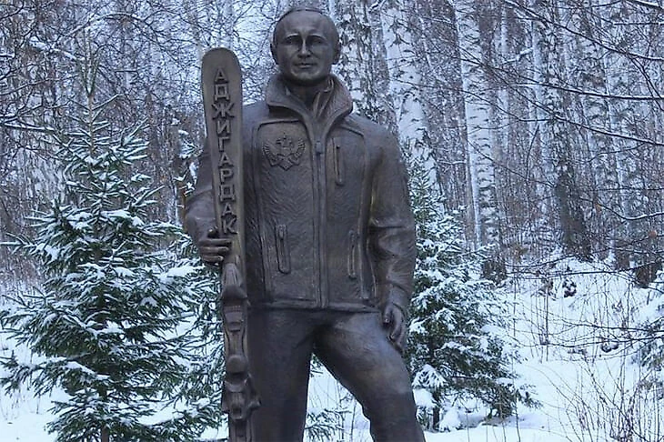 Путин в кимоно – не единственна скульптура, изображающая президента в спортивной форме. В 2017-м в Челябинской области открыли памятник Путину-горнолыжнику: бронзовую фигуру высотой 1,8 м установили у комплекса на хребте Аджигардак.