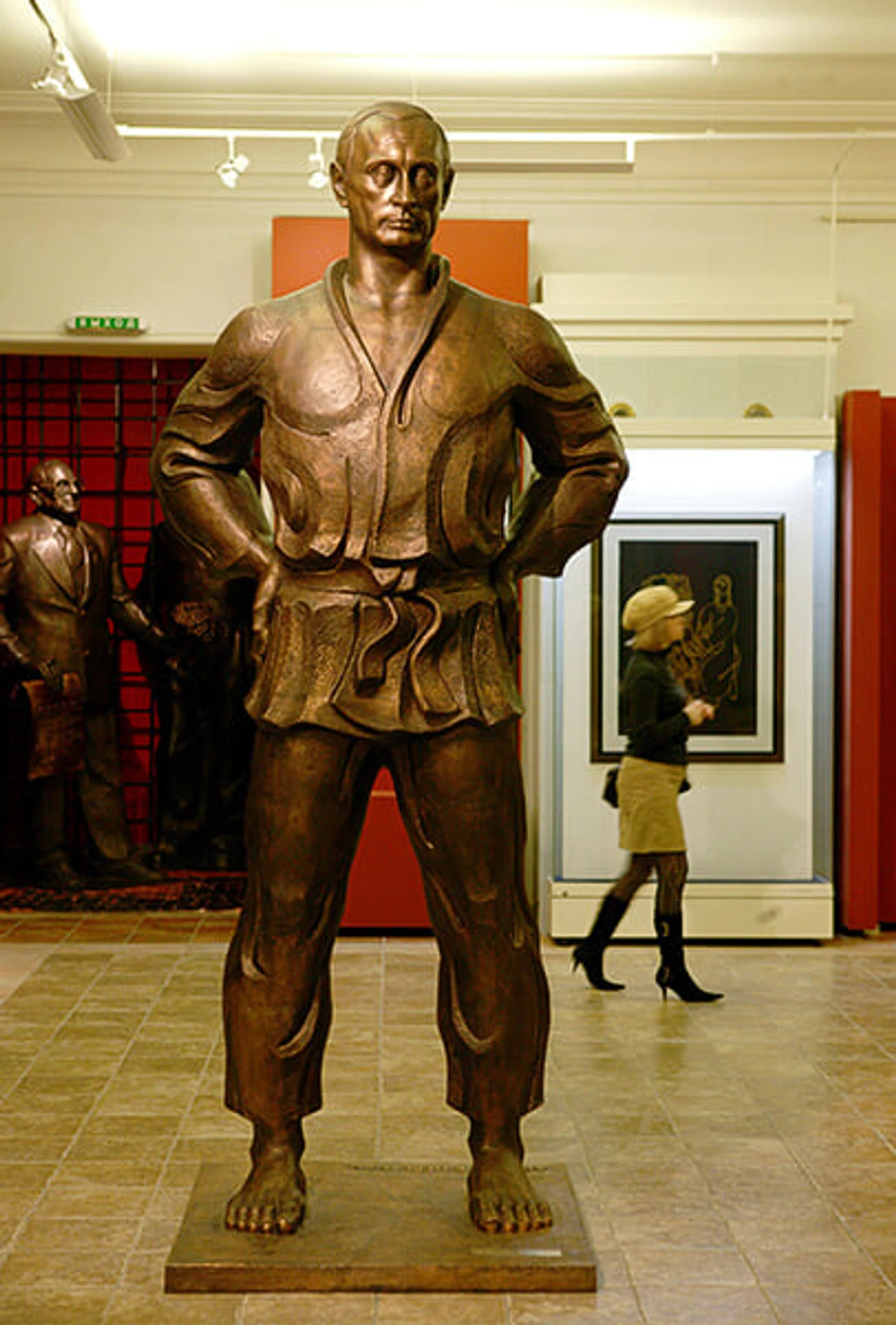Спортивная форма так привычна на Путине, что знаменитый скульптор Зураб Церетели изваял его не в деловом костюме, а в кимоно.