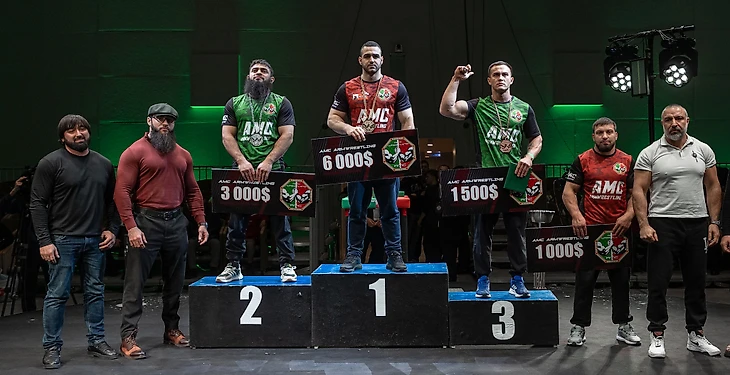 Михаил IRON HELLBOY Нифонтов является четырёхкратным чемпионом мира WAF! Многие видели его невероятную зарубу на чемпионате мира с Олегом Жохом в категории до 80 кг. Но покорять АМС Михаил решил с 95 дивизиона, одного из самых конкурентных в Лиге. «С кем из фаворитов он попадет до финала он просто выжмет с них все! Невероятная статическая сила у него!» - предупреждал тогда всех призер чемпионата России Тамерлан Гаглоев. Так оно и получилось, перед силой и выносливостью казахского рукоборца не устоял даже неуступчивый Роман Филиппов. В итоге на первом для себя турнире АМС Михаил забрал почётное 3 место, уступив лишь Артёму Тайнову и Эльдару Бубенко!