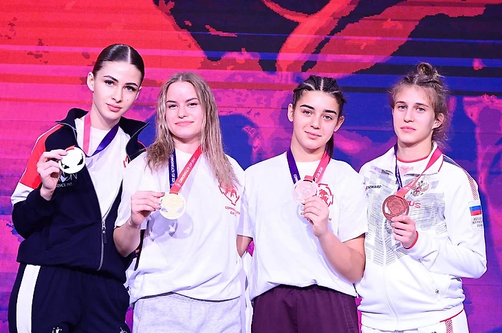 1. Екатерина Руднева. 2. Василиса Куринная. 3. Эвилина Дильмухаметова (все - Россия) и