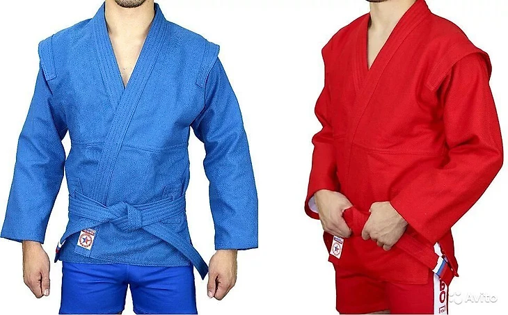 Самбисты выходят на татами в самбовке, короткой куртке красного или синего цвета и коротких шортах. Куртка завязывается поясом. В отличие от кимоно дзюдоистов в самбовке для пояса есть специальные прорези, чтобы он прочнее держался на теле. На ногах у самбистов специальные борцовки с защитой щиколоток. Для пошива самбовок используют хлопок. Одежда во время тренировок, соревнований плотно прилегает к телу. Важно, чтобы материал не вызывал раздражений, аллергических реакций, а кожа «дышала».