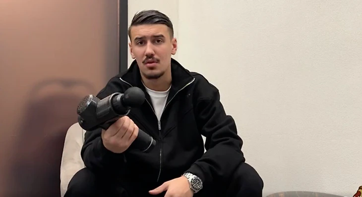 После этого он достал массажер для мышц и с удивлением обратился к оператору: