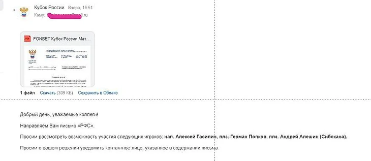 Скриншот письма был опубликован в телеграм-канале El Classico band.