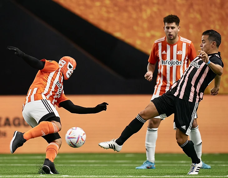 Футболист в маске Enigma 69 сыграл в испанской медиалиге. Его узнали по тату