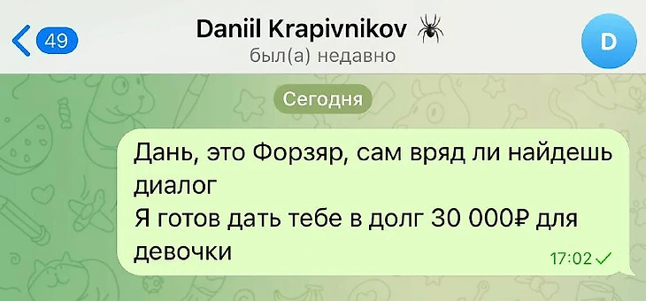 Давай закроем вопрос уже, а то слушать про то, что у тебя нет денег, надоело», – написал Форзяр.