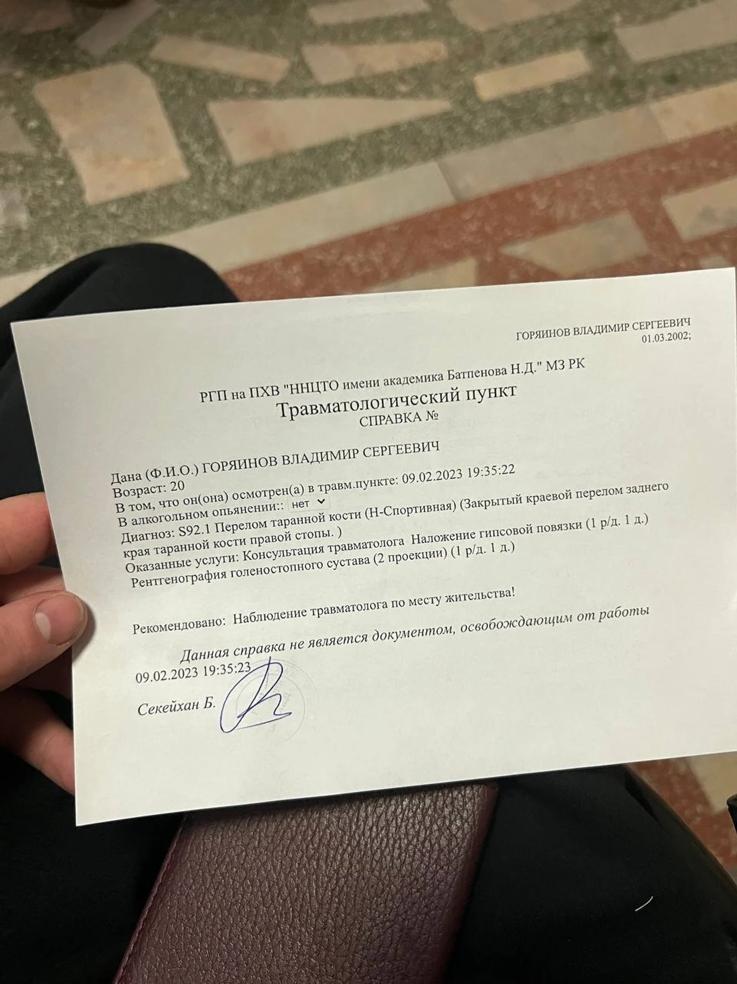 Володя XXL с переломом отыграл 2-й тайм против 2Drots. Ему наложили гипс сегодня