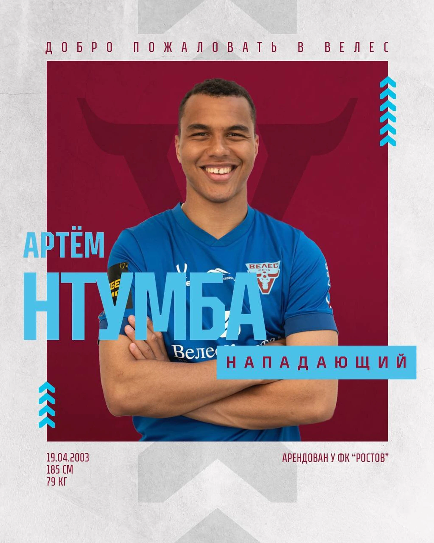 Форвард «Ростова» и игрок 2Drots Артем Муамба Нтумба перешел в ФК «Велес» на правах аренды.