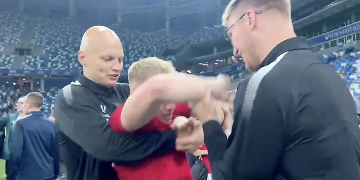 Он пытался сцепиться с игроком «РМ», его долго не могли успокоить ни служба безопасности Winline Медиалиги, ни футболисты команды соперника, ни даже одноклубники.