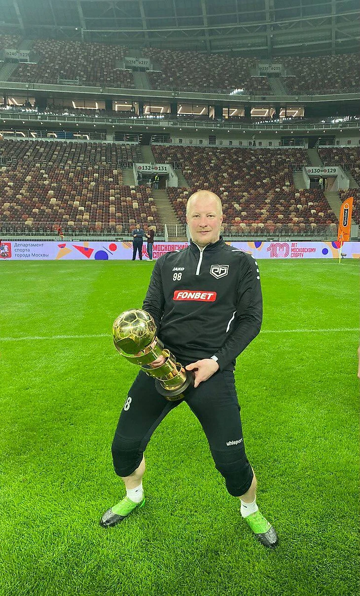 Голкипер «Родины Медиа» повторил жест Мартинеса после победы в Winline Медиалиге. Будаков приложил к паху кубок и сделал фотографию.