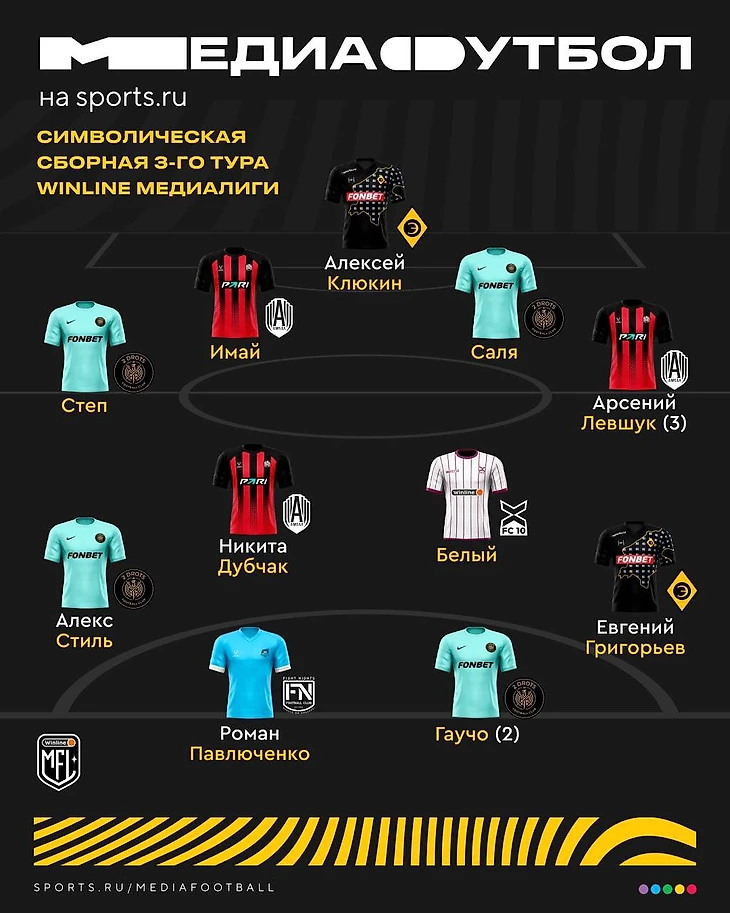 Гаучо, Павлюченко, Левшук – в символической сборной 3-тура Медиалиги по мнению подписчиков