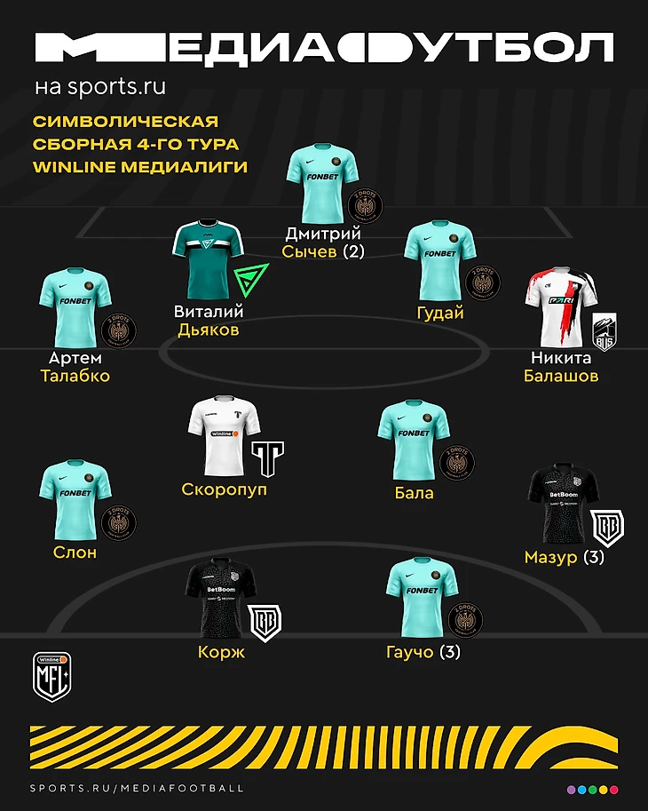 Представлена символическая сборная 4-го тура Winline Медиалиги.