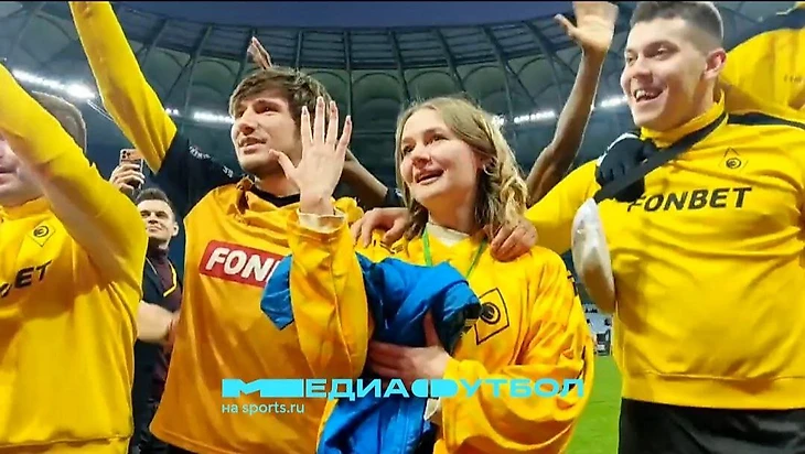 Сразу после победы в матче за 3-е место в Winline Медиалиге полузащитник встал на колено и протянул кольцо. Девушка ответила согласием.