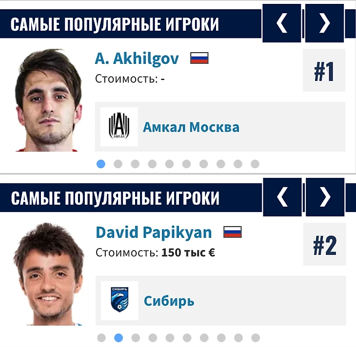 Топ популярнейших игроков русской версии Transfermarkt возглавили новички «Амкала» Ахильгов и Папикян. Они опередили Пьянича, Роналду и Месси