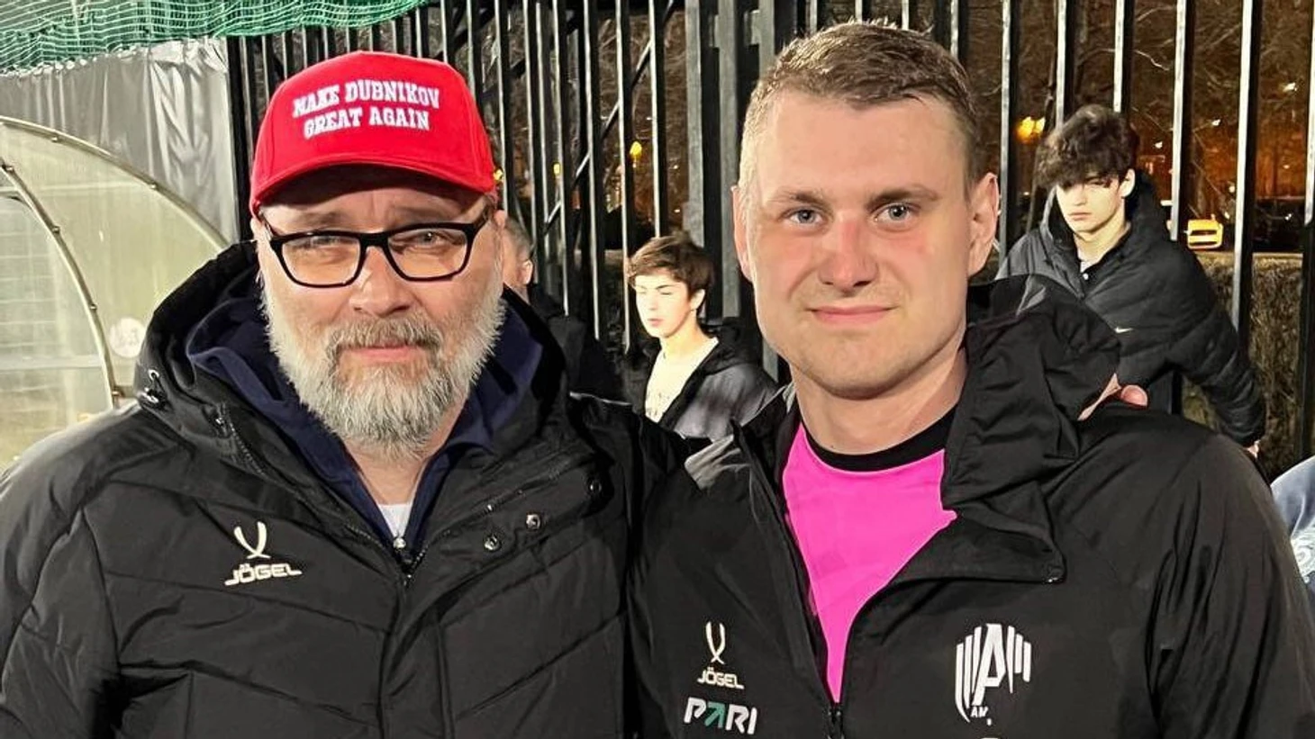 Овчинников на фото стоит в кепке с надписью Make Dubnikov great again.
