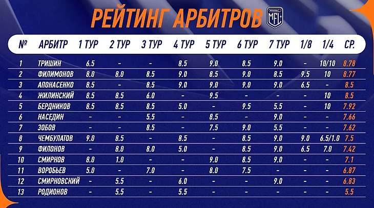 Судья Чембулатов опустился с первого на восьмое место в рейтинге арбитров Медиалиги