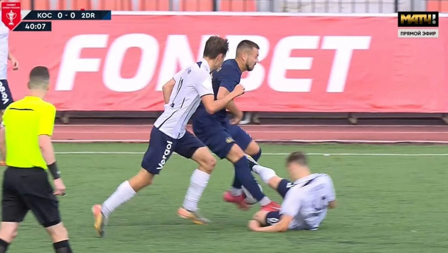 24-летний футболист получил прямую красную карточку в матче Пути регионов Кубка России против «Космоса» (0:1).
