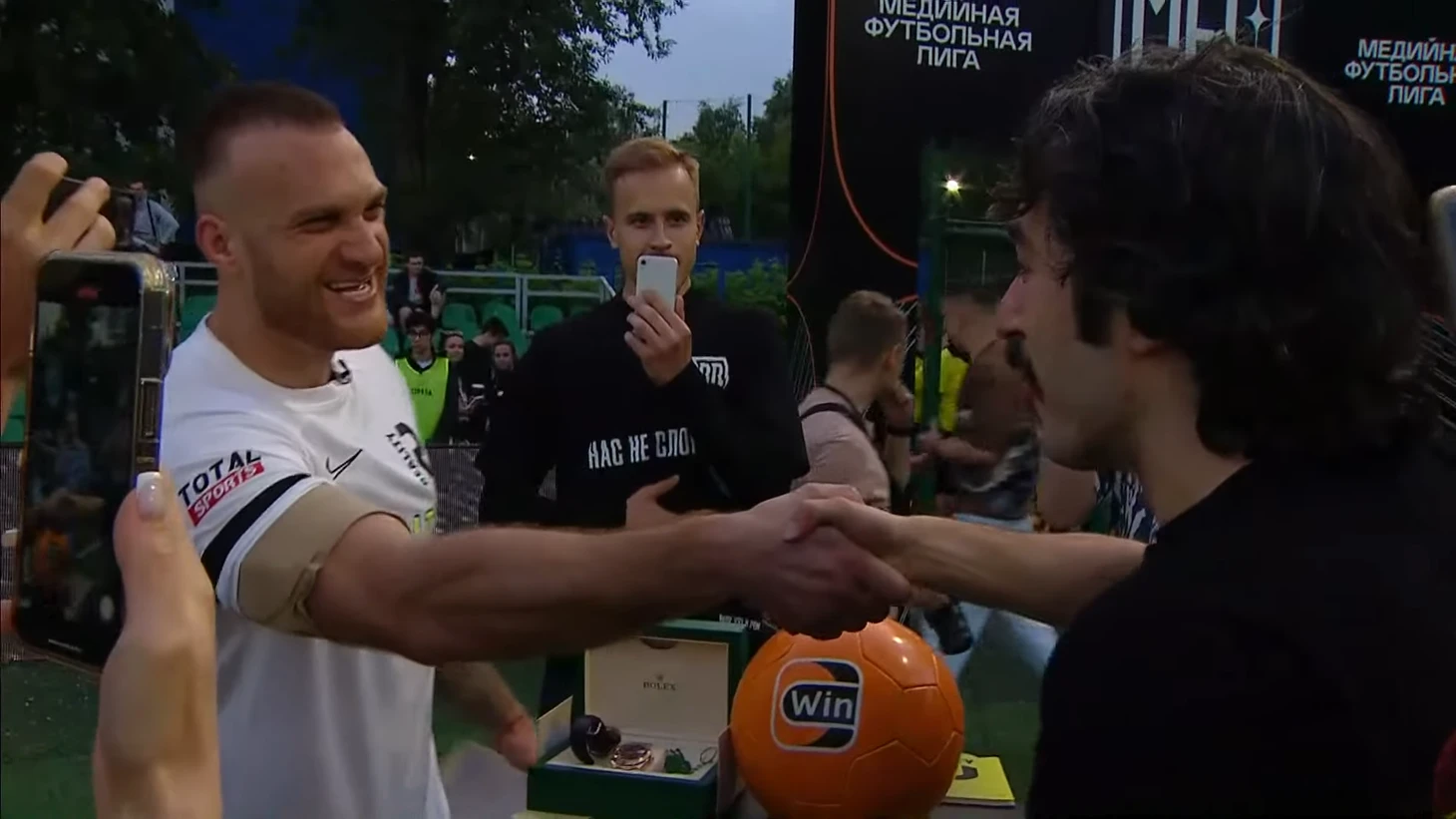 «Мой друг Николай Осипов, по совместительству президент лиги развел меня на спор с Райзеном на часы. Говорю откровенно, это было давление со стороны лиги (смеется). Заруба будет хорошая, заруба будет интересная, а часы будем сохранять. И я в первую очередь. Если проиграем придется отдать, я даже коробку с собой привез, документы. Мы будем выходить вместе с ней, я передам ее Коле, и она будет с ним до конца матча. Теперь это самый дорогой матч в истории медиа футбола. Я буду воевать за свои часы».